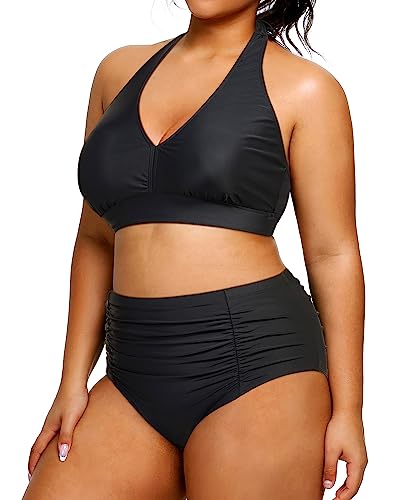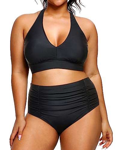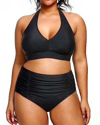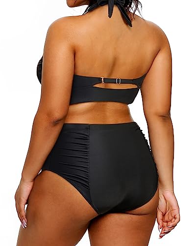 Plus Size Halter Bikini Tummy Control Two Piece Swimwear